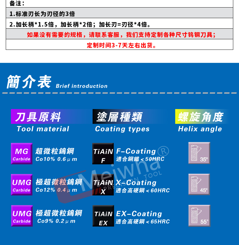 台湾梅华铝铣刀钨钢铣刀球刀圆鼻刀数控刀具合金涂层立铣刀CNC