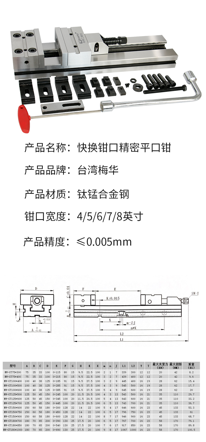 台湾梅华精密平口钳CNC加工中心快换钳口组合式夹具铣床快动虎钳