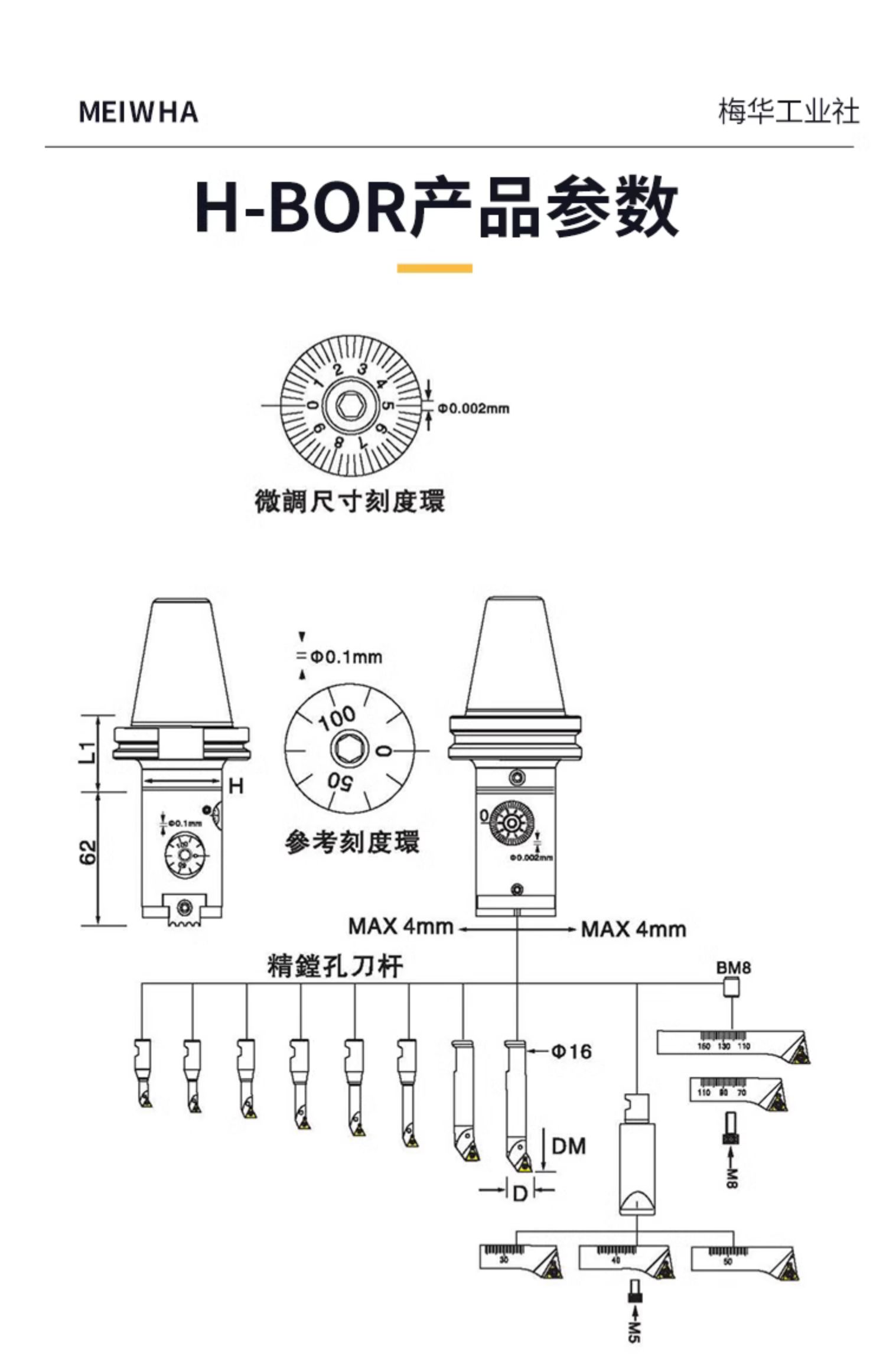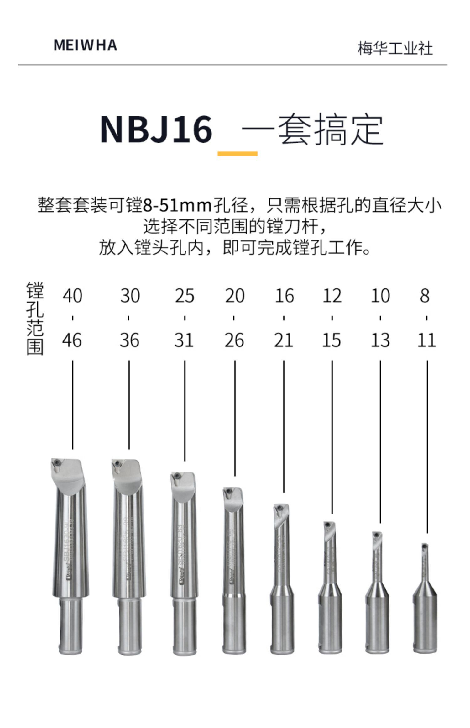 台湾梅华精镗头NBJ16NBH2084小孔径镗孔微调精镗刀套装加工中心