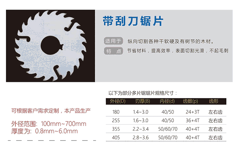 以下为部分规格锯片: