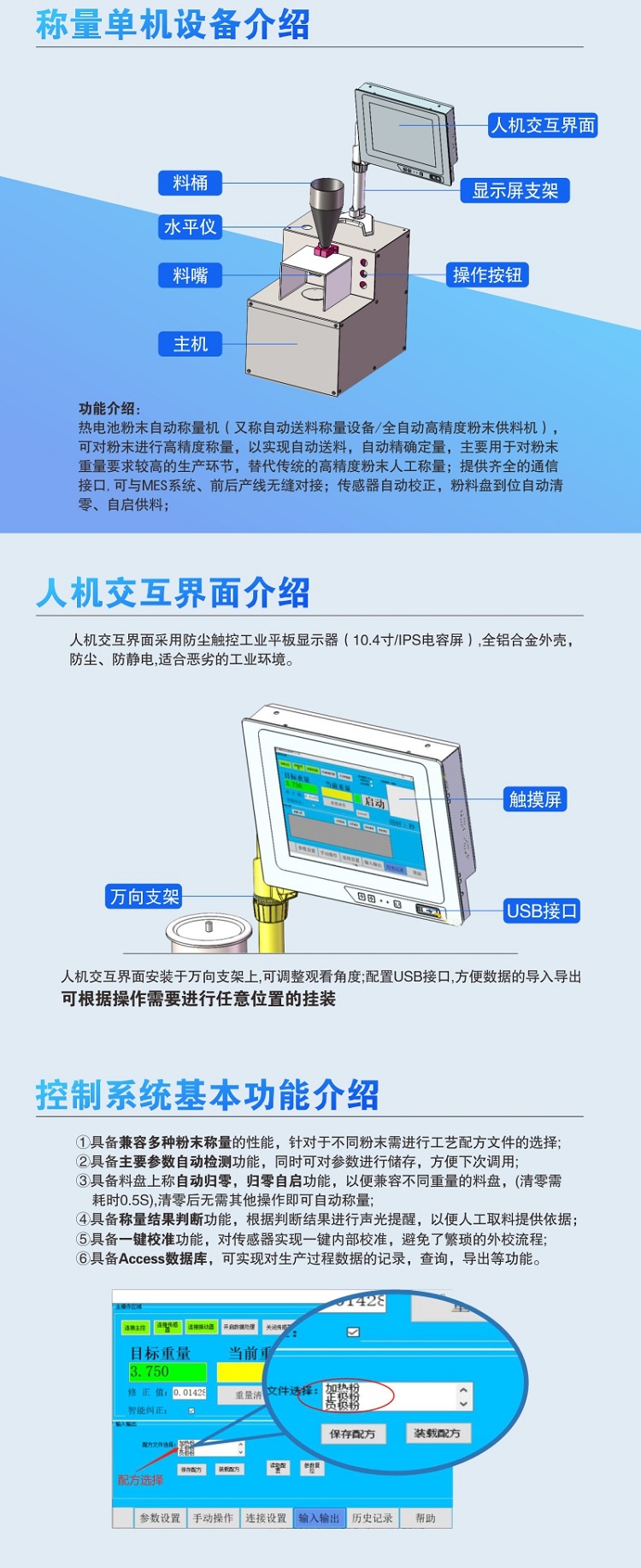 应用场景主要用于对粉末重量精度要求教导场合