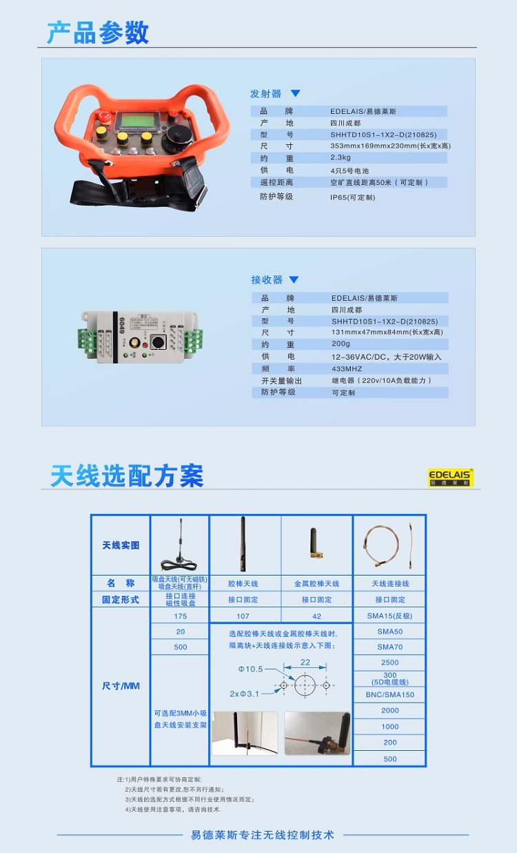 接收器供电 | AC/DC12~24V供电,功率大于10W | ||
