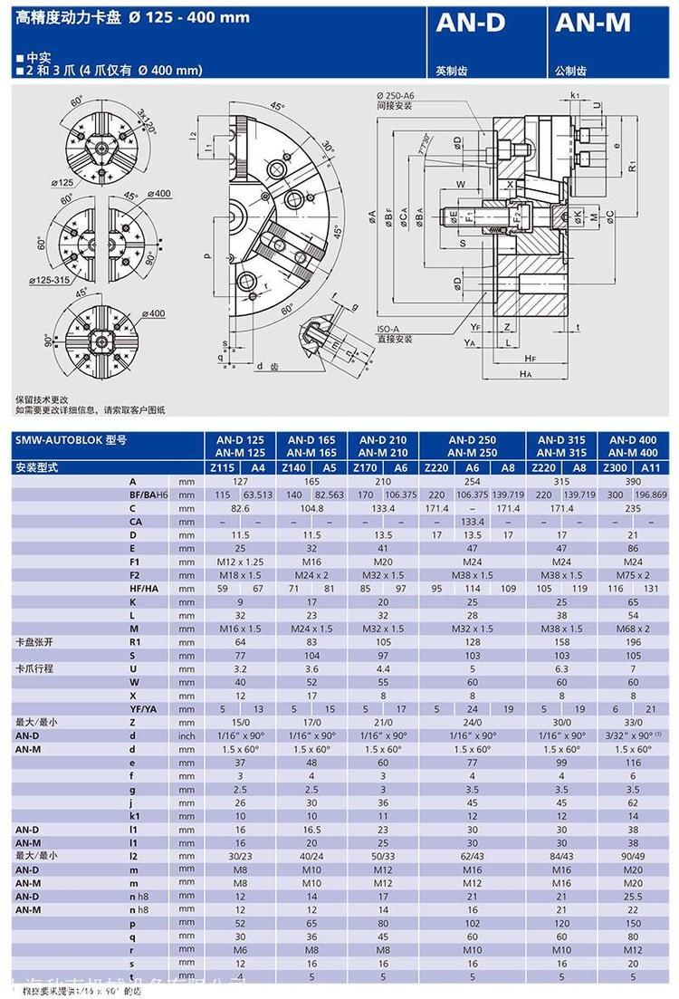 德国卡盘SMW-AUTOBLOK三爪中空液压卡盘AN系列:规格说明书