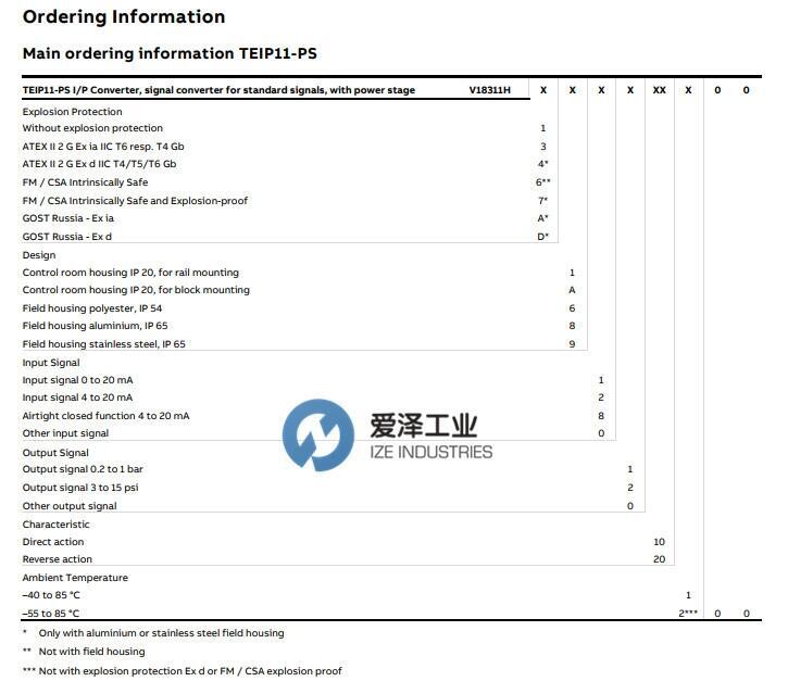 ABB IP转换器V18311系列选型表