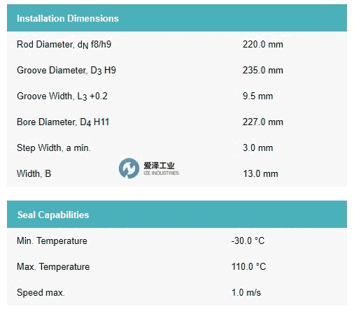 外侧刮尘唇紧贴沟槽,以保证的密封力,进而防止脏物和水通过沟槽底部侵入系统。在污染物严重侵袭和活塞杆侧向操作时,防尘圈也能起保持稳定的作用。聚氨酯橡胶材料可保证使用寿命长。同时业已证明,这种防尘圈安装时不易损坏。