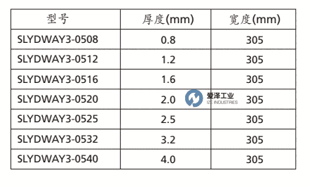 特瑞堡导轨软带的标准厚度是0.8 mm,1.2 mm,1.6 mm,2.0 mm,2.5 mm,3.2 mm和4 mm,标准宽度305 mm,长度按照您的特殊要求。可提供定制的厚度,定制时要求订货数量。