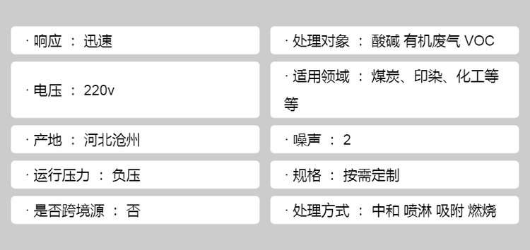 处理对象 | 酸碱 有机废气 VOC | ||