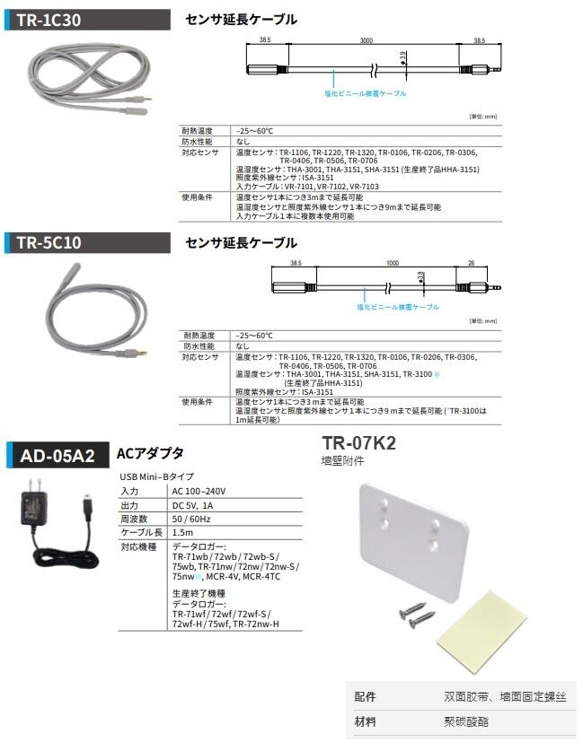 温度传感器 (TR-0106) x 2、AA 碱性电池 (LR6)、注册码标签、使用说明书(有保修)一套 |