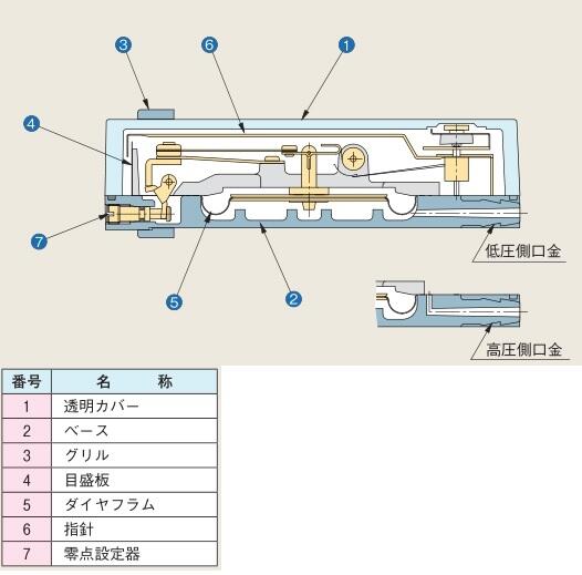 高圧側「H」、低圧側「L」のマークにて口金部に表示 |