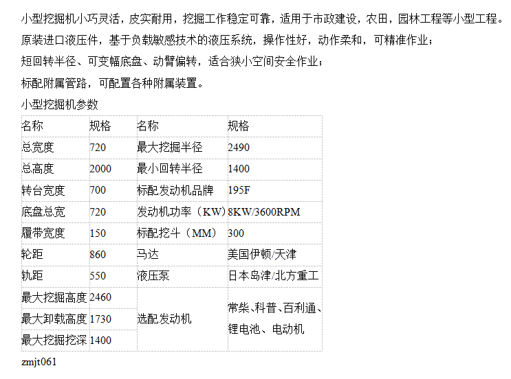 型号 | 小型挖掘机 | ||