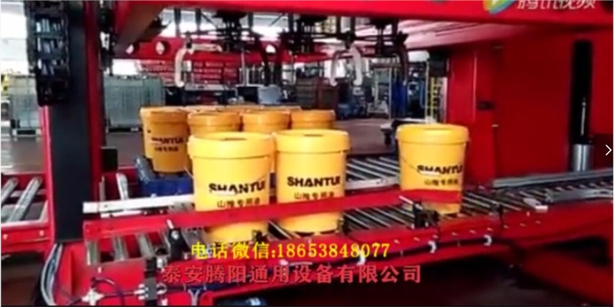针对劳动力日趋紧张,各中、大型润滑油厂,净水厂劳动力资源不足等情况,我们通过对多数厂家的实际调查以及应部份客户的要求,投入大量人力、物力开发成功桶装自动码垛机设备,占地面积少,运行费用低,每小时可码1200桶按要求叠成二--三层(每层4*2桶),以便于运输和存放,整台设备只需一人即可轻松操作,程度上减轻了员工的劳动强度及降低整个生产线的人员编制。
