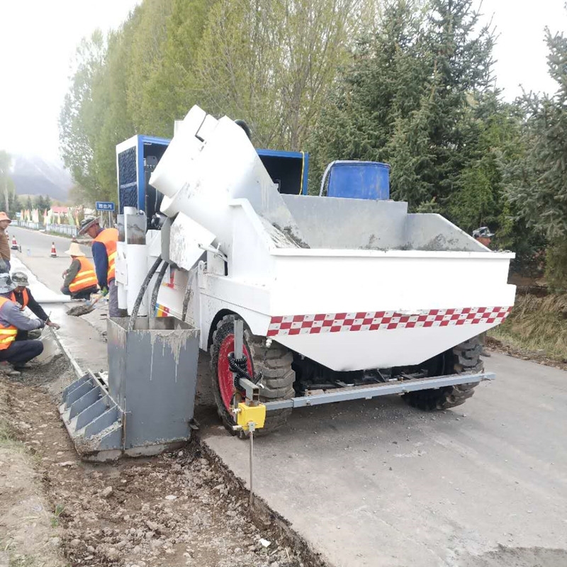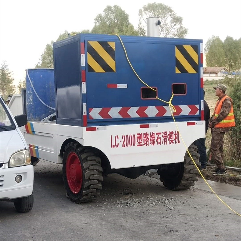 小型滑模式路沿石成型机在路基上边制边行,可连续作业,生产相当方便。每天可生产成型路缘约800米。