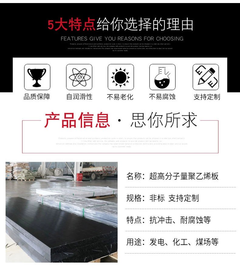 津鸿橡塑超高分子量聚乙烯板耐磨抗冲击UHMWPE耐腐蚀PE工程塑料板
