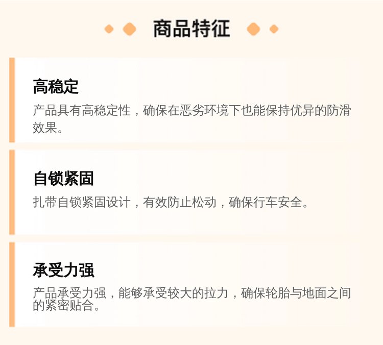 浙江金星TS302004334系列汽车轮胎防滑扎带结合中央供料系统、全自动机械手、电磁加热等国内先进的配线器材生产设备,选用UL台格之高品质NYLON66材料,具有高稳定,自锁紧固,承受力强,易于安装等优点,装配更加轻松快捷。