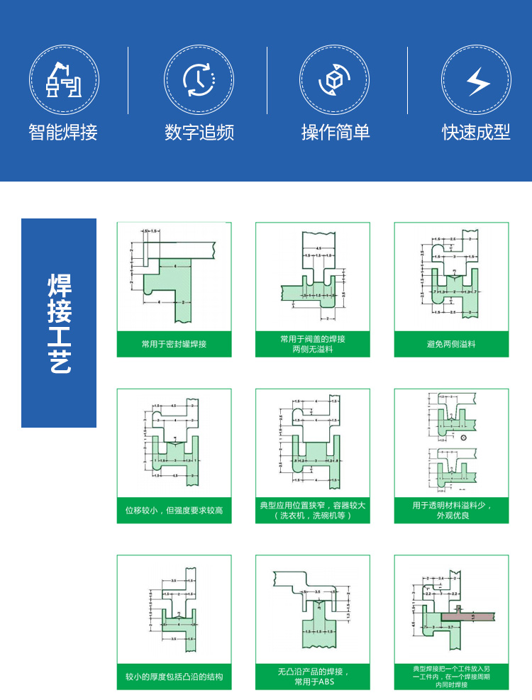 焊接方式 | 塑胶焊接、时间模式、深度模式 | ||
