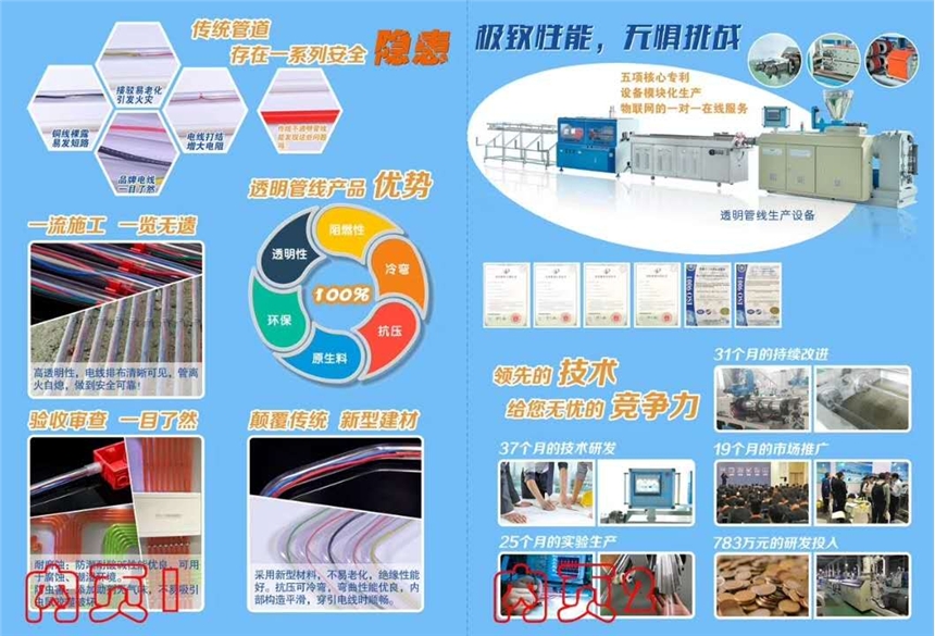 品牌盛凯瑞型号55/110产品别名透明管专用挤出设备种类管材挤出机螺杆数双螺杆螺杆直径110(mm)生产能力100--150(Kg/h)定位精度1(mm)电动机功率22(kw)售后服务整机质保一年,主电器二年规格55/120 55/110是否跨境货源否PVC一出二透明管生产线,在保证产品质量前提下,该设备在极大程度上降低了设备投入成本,厂房投入成本和生产投入成本,大大提高产量,减少生产时间。生产线由以下配件组成:1.55/110双螺杆挤出机,2.一出二模具,3.定型台.4.牵引切割一体机,5.料架。