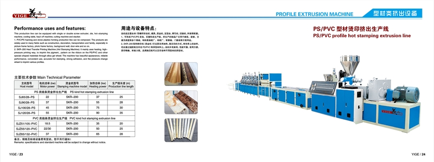 热转烫印挤出机该机组主要由单 / 双螺杆挤出机,模具,烫金机,定型台,牵引机,切割机,料架等配套。