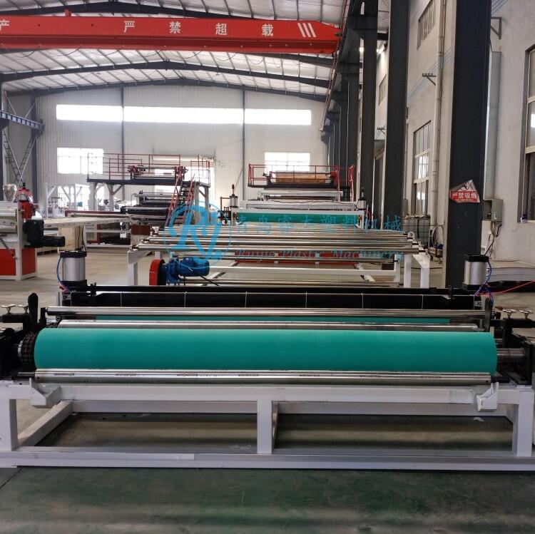 该生产线结构简单,操作方便,可以根据客户的要求,配置不同的设备组件,用于生产单层、多层复合产品;也可增加放卷装置,生产内增强产品或表面复合无纺布、PVC装饰膜等的产品。
