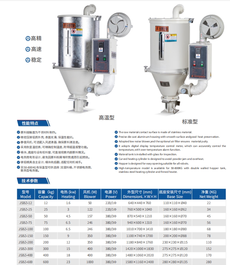 淄博塑料干燥机/淄川干燥桶/博山烘料机指塑料在连续受热而不变形的温度下,排除塑料原料中的水汽和其它易挥发物质,这个过程称为干燥。