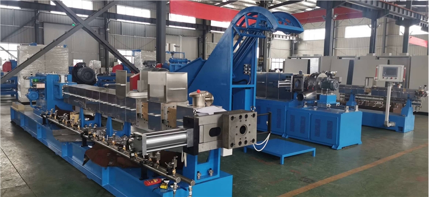 平行双螺杆造粒工艺为:密炼机--提升机---平行双螺杆造粒机---水曹---切粒机---料仓.