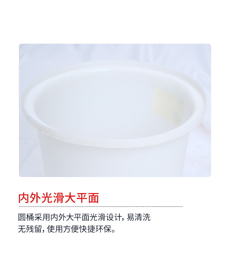 桶体采用韩国乐天公司PE食品级卫生用料,滚塑一次成型。符合国家食品卫生要求,产品可配上推车,移动灵活方便。