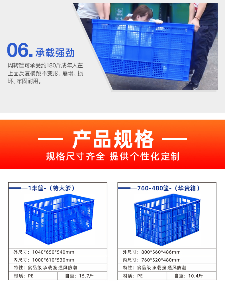 周转筐,超强耐磨抗冲击,广泛适用于食品,饮料,啤酒,医药,纺织,汽车制造,电子电器,五金机械,物流运输等行业