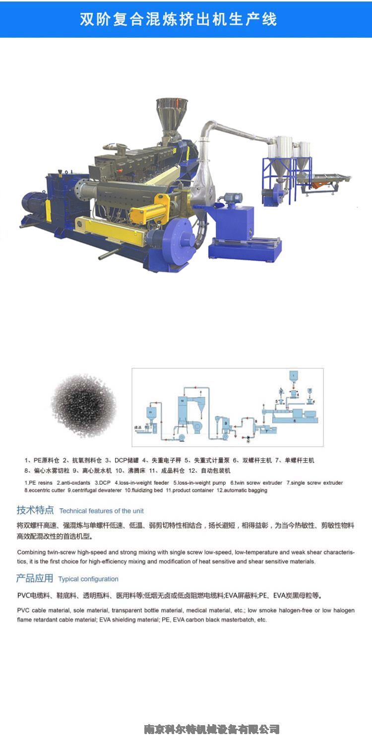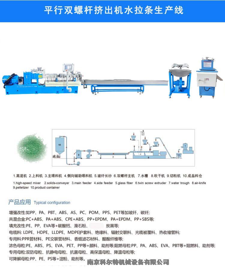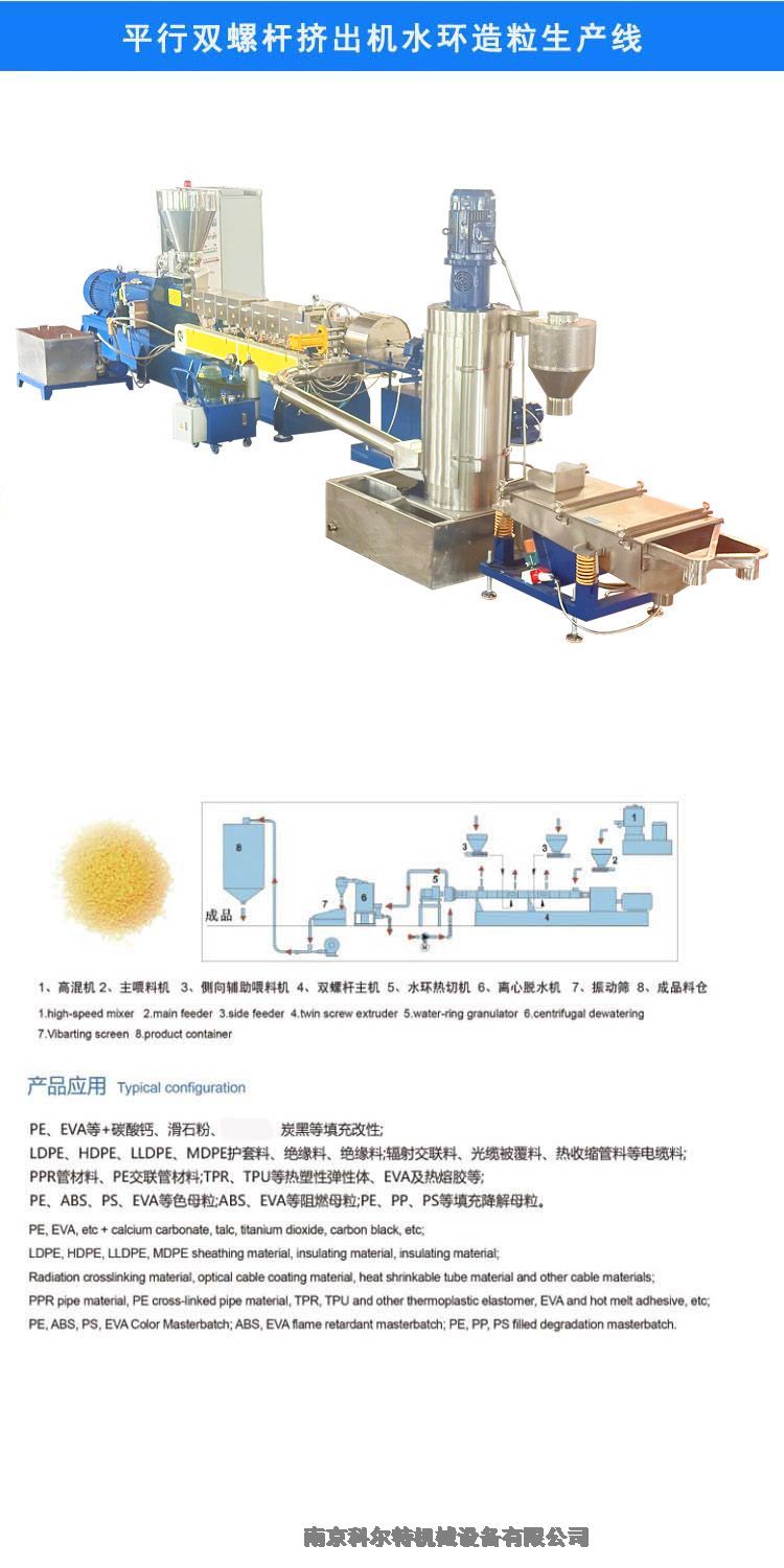 主营:双螺杆造粒机,三螺杆造粒机(水拉条造粒机,风冷输送带造粒机,水环切造粒机,风冷热切造粒机,双阶混炼造粒机,水下切造粒机),