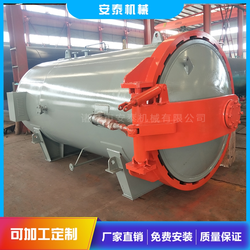 复合材料热压罐,汽车配件热压罐,真空热压罐成型工艺是广泛应用的复合材料结构、蜂窝夹心结构及金属或复合材料胶接结构的主要成型方法之一。材料成型时,利用该设备提供的均匀温度和压力环境实现固化,所以可得到表面与内部质量较高,结构复杂,面积大的复合材料制件。复合材料基体树脂的固化,除了与树脂的分子结构有关,还与其他组分(固化剂、交联促进剂等)有关,外界条件一温度、压力和时间因素对固化起着重要的作用,通常称这三个因素为主要工艺参数,一切真空热压罐成型工艺方法都要根据基体树脂的分子结构变化规律确定其相应的工艺参数,热压罐必须具备实现控制这些工艺参数的功能。控制系统介绍采用专业热压控温软件、由PLC温控模块、温度传感器、压力传感器、控制箱、链接线路等组成。采用PLC温控模块,通过温度传感器收集罐内的温度数据传输到PLC控制箱,并在计算机上实时显示罐内温度数值,方便直观。保温阶段程序自动调用PID温度整定,确保热压罐内温度的准确性和稳定性。