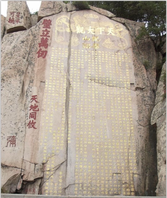 《尔雅》曰:太山为东岳。《周官》曰:兖州之镇山。实惟天帝之孙,群灵之府。其方处万物之始,故称岱焉;其位居五岳之伯,故称宗焉。自昔王者,受命易姓,于是乎启天地,荐成功,序图录,纪氏号。朕统承先王,兹率厥典,实欲报玄天之眷命,为苍生之祈福,岂敢高视千古,自比九皇哉。故设坛场于山下,受群方之助祭;躬封燎于山上,冀一献之通神。斯亦因高崇天,就广增地之义也。
