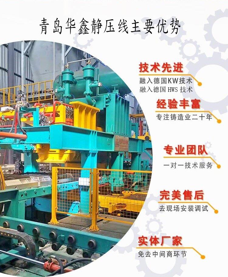 “青岛华鑫盛业”生产的静压造型线为自动造型生产线,力求做到工艺先进、设备可靠、操作方便、维修容易。