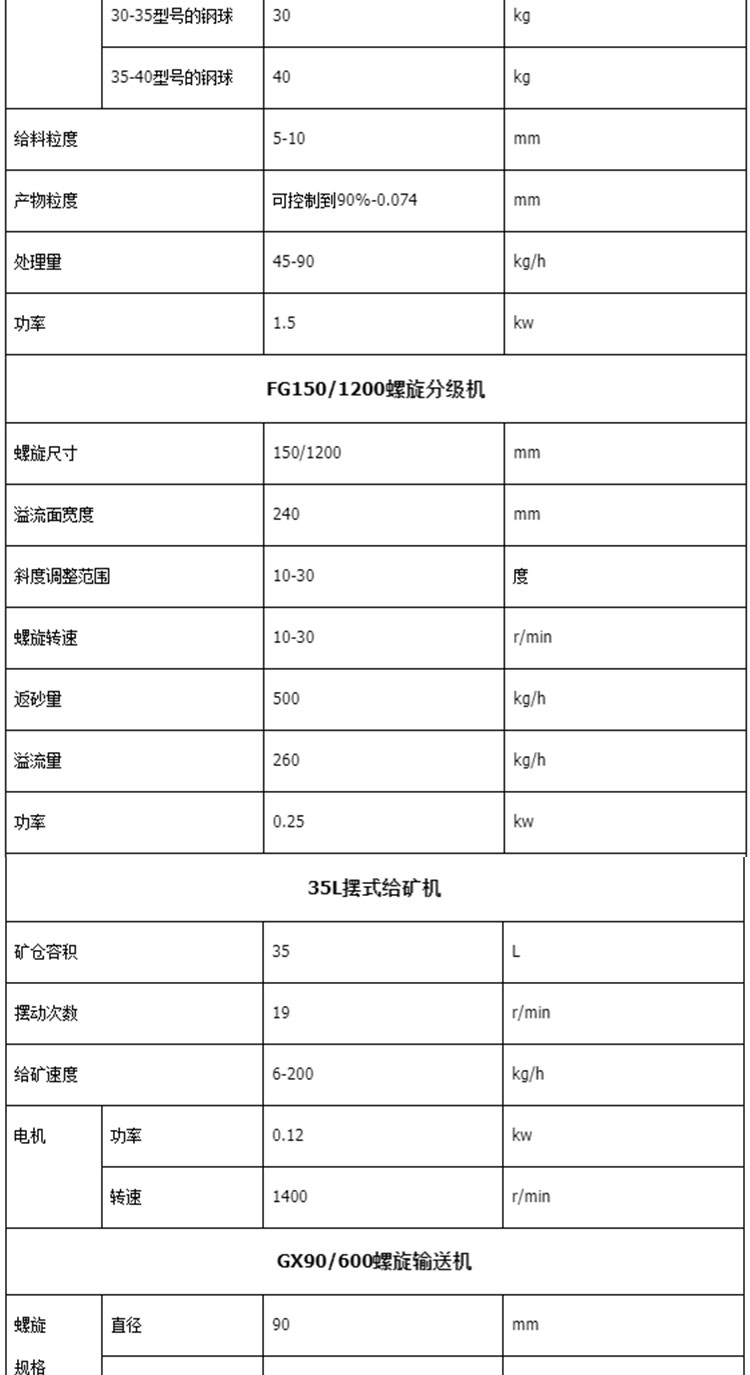出料粒度 | 0.074mm可控制到90%mm | ||