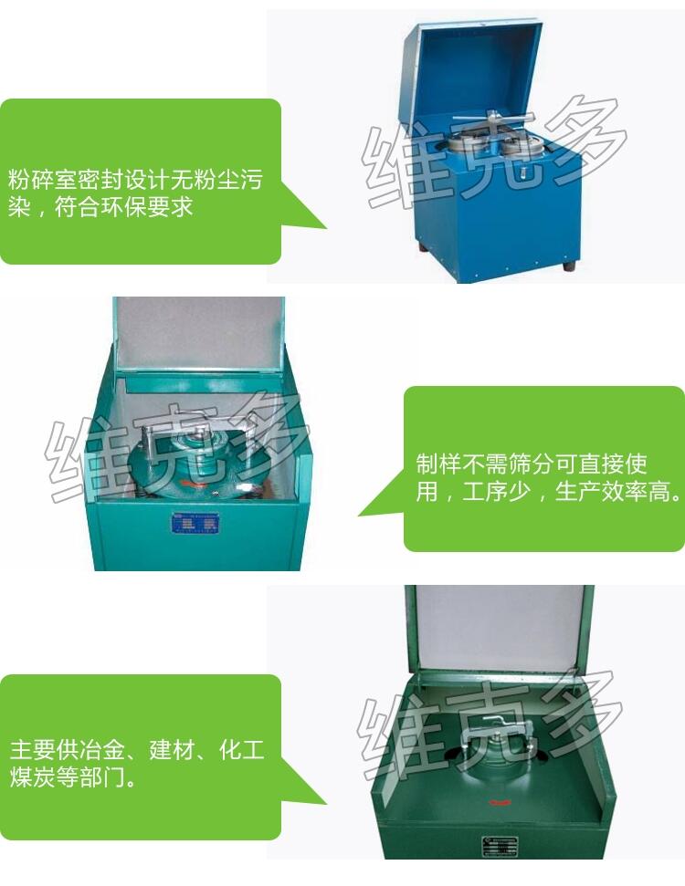 制样粉碎机主要供煤电、电力、矿山、地质、化工、冶金、建材及化工等行业科研单位、院校实验室内无污染进行物料粉碎,制样化验,机内带自动除尘器,具有噪音小、无污染、操作方便,是干式磨粉设备。
