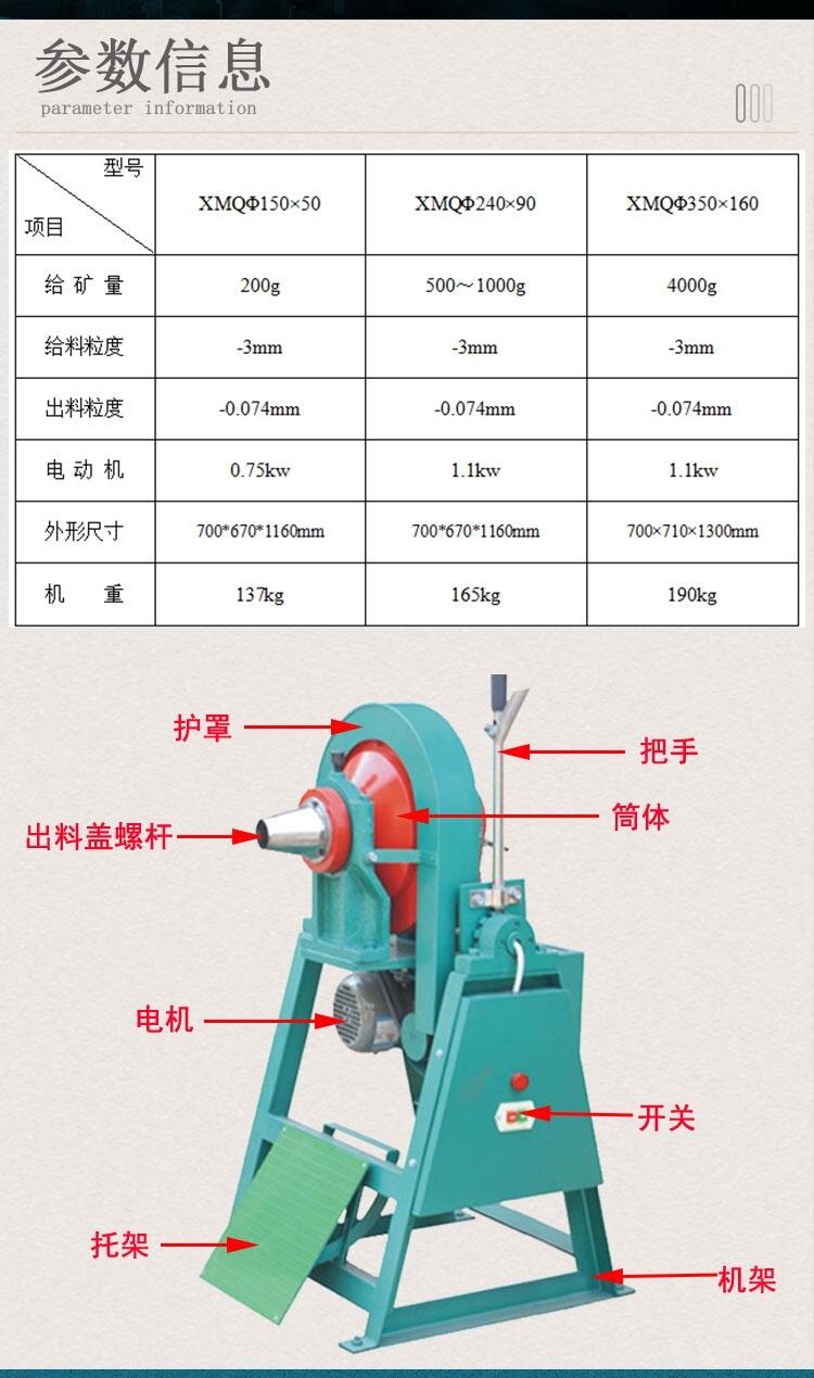 实验室球磨机 铝矿石研磨粉碎机 XMQ240*90矿用锥形球磨机价格