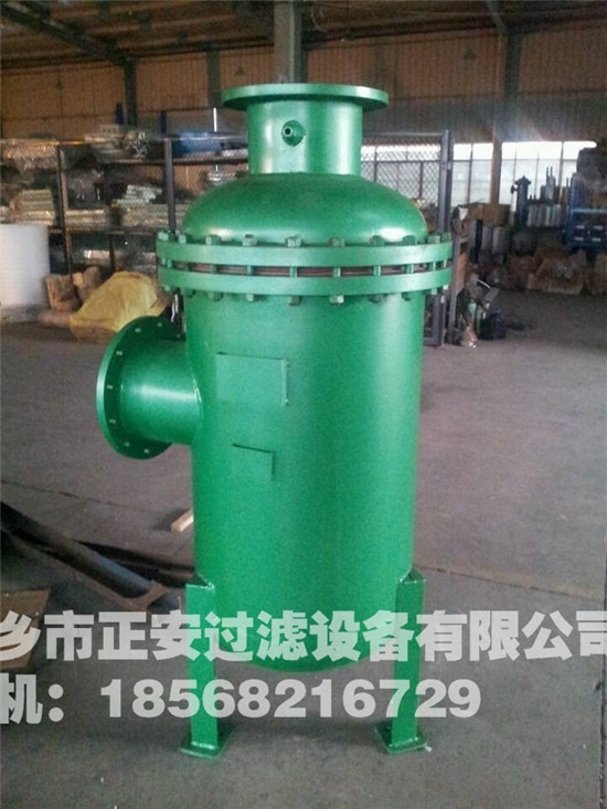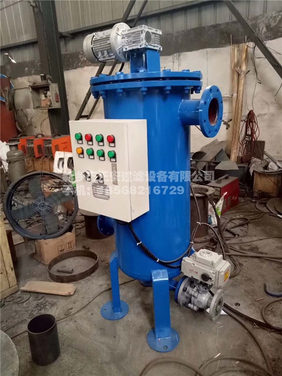 污水自入水口进入,经过粗、细滤网过滤,然后流向出口。在过滤过程中,细滤网表面逐渐积累水中的杂质。形成过滤杂质层。由于杂质堆积在细滤网的内侧,因此在细滤网的内、外两侧就形成了一个压力差。当压差达到系统预设值时,自动清洗功能被启动,在此期间系统的供水不中断,排污阀打开,污水由排污阀排出。此时水力马达室及集污器内的压力大幅下降,开始吸污过程:此时同样一股很强的反冲洗水,流向外部,吸嘴上产生一股吸力,再加上水流经过水力马达时,由于液压活塞压力下降,带动集污器绕轴进行旋转做轴向运动,将整个细滤网内表面完全清冼干净。该过滤器同时安装有定时控制器,可在一定时间间隔内定时排污。电机驱动型吸污式过滤器原理同上,只是集污器由电机驱动。