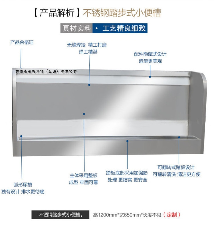为提高我国公共卫生设施的水平,做出我们不懈的努力, 自动冲水不锈钢便池特点:该产品可按用户需求加工制作成不同形状和长度。其特点: 一 可限度的利用空间,提高使用率,在大型公共场所和相对集中的地方所体现出的优越性是单体小便池不可替代的。