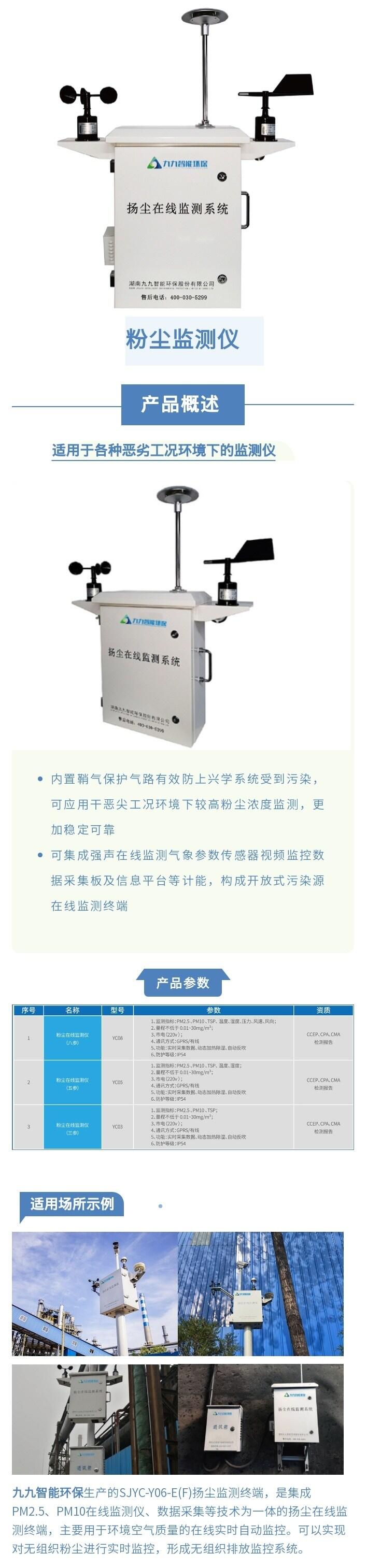 九九智能环保生产的JJ KCG-S4-8扬尘监测终端,是集成PM2.5、PM10在线监测仪、数据采集等技术为一体的扬尘在线监测终端,主要用于环境空气质量的在线实时自动监控。可以实现对无组织粉尘进行实时监控,形成无组织排放监控系统。
