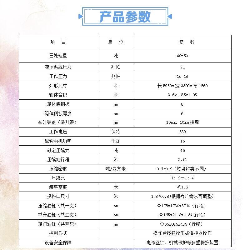 2、垃圾投料门关闭、快速推进到位后、转入压缩状态;