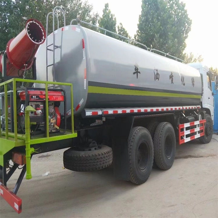 二、上装部分:标配罐体材质为Q235国标碳钢,厚度为4MM,标配前冲、后洒、侧喷、罐体后带工作平台、平台上安装绿化洒水炮,洒水炮可旋转,可连续调成直冲状、大雨、小雨、毛毛雨,带安全护栏。配备大功率专用洒水泵,泵可自吸自排,安装过滤网,带消防接口,可通过消防栓进水,带自流阀,配三米水管2根。