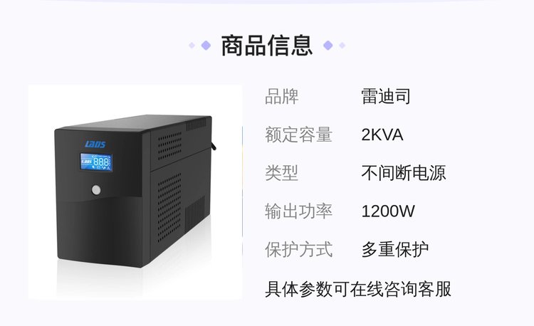 雷迪司H2000UPS电源2KVA1200W外观简洁