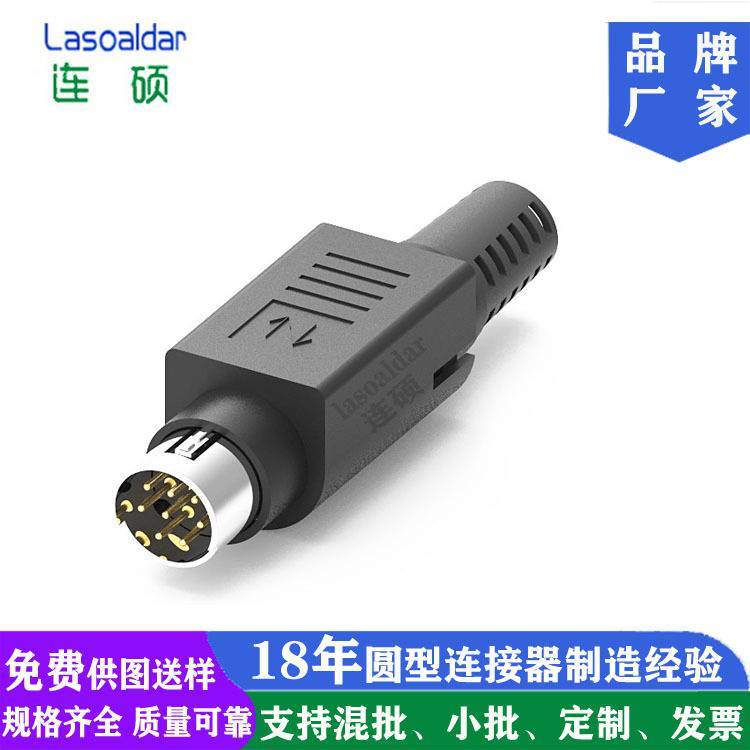 LASOALDAR连硕品牌厂家生产组装配式八芯迷你钉公插头assembly MINI DIN PLUG CONNECTOR8PIN