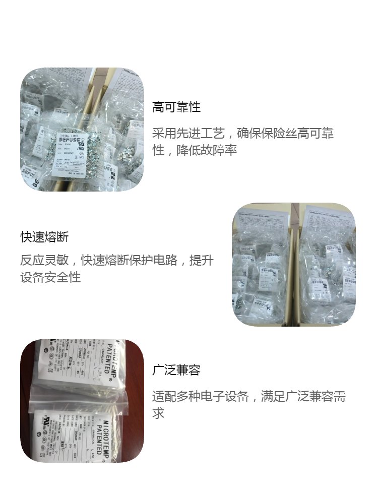 东莞市爱多电子有限公司销售的NEC、sefuse、SCHOTT、SF-E 系列保险丝是AC250V 10A/AC125V 15A,温度范围从70℃至240℃,有SF70E,SF76E,SF91E, SF113E, SF119E,SF129E,SF139E,SF152E,SF169E,SF184E,SF214E, SF226E, SF240E,产品认证齐全,产品质量稳定,是电器设计工程师的优先之选。