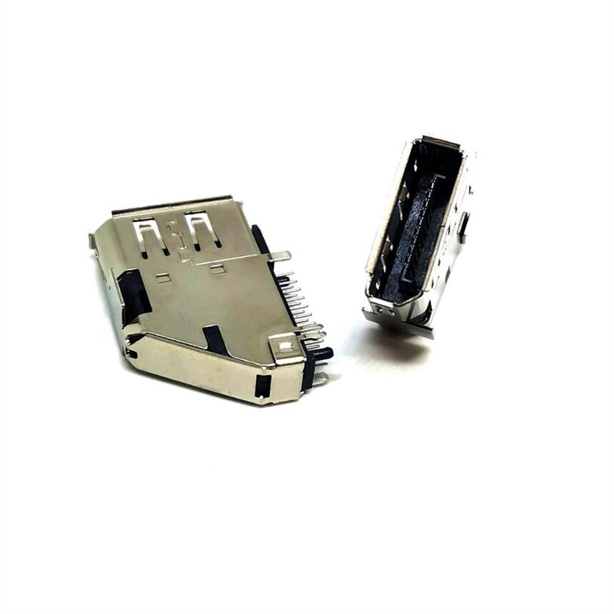 DP20P侧插母座 DispalyPort 侧立式插板四脚DIP有柱音频插座 卷边