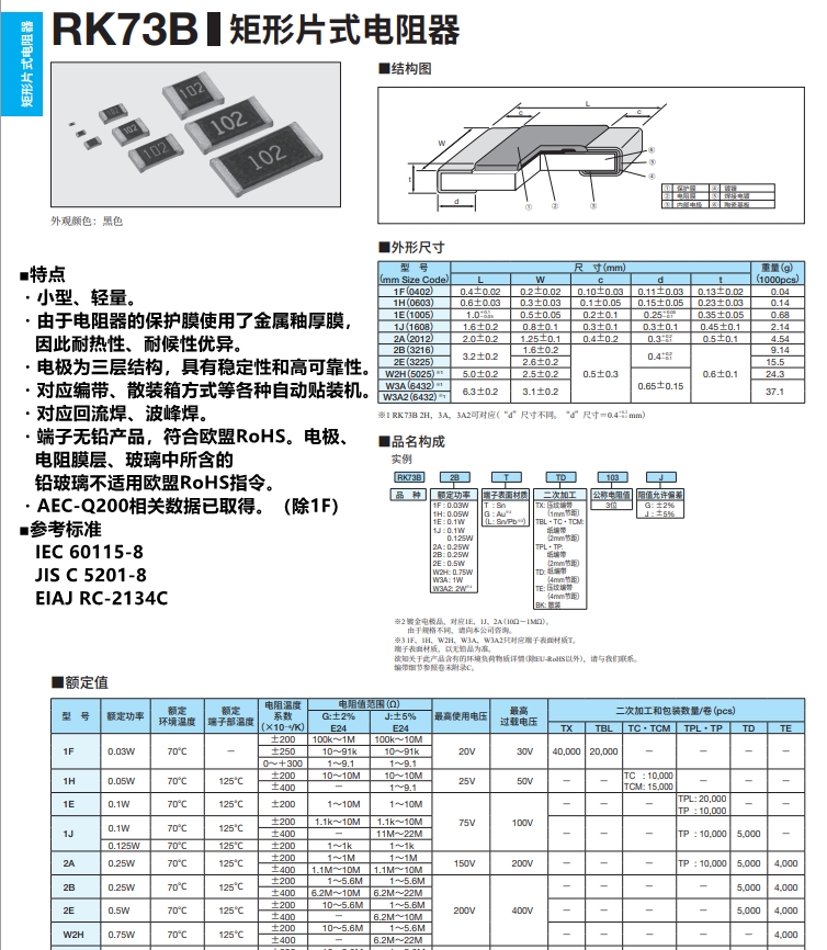 2、由于电阻器的保护膜使用了金属釉厚膜,因此耐热性、耐候性优异;