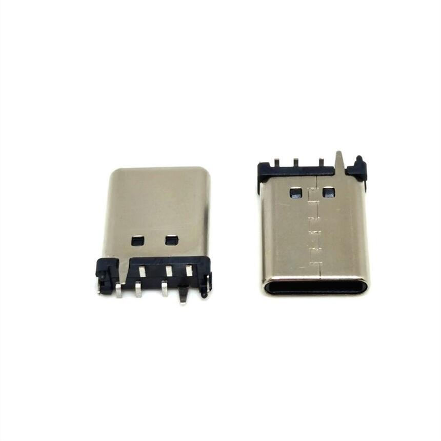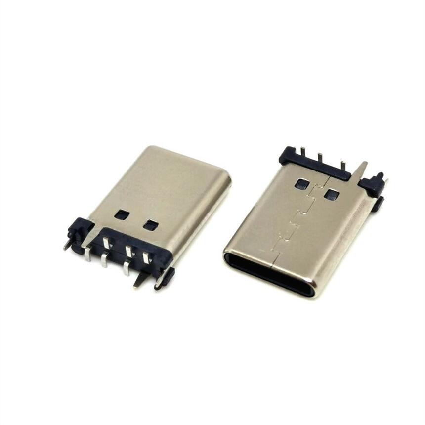 TYPE-C 6PIN公头  立式贴片SMT 四脚插板L=11.15 不锈钢壳