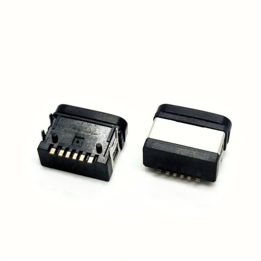 TYPE-C 6PIN板上防水母座  外壳四脚插板L=10.64 后柱 IPX6