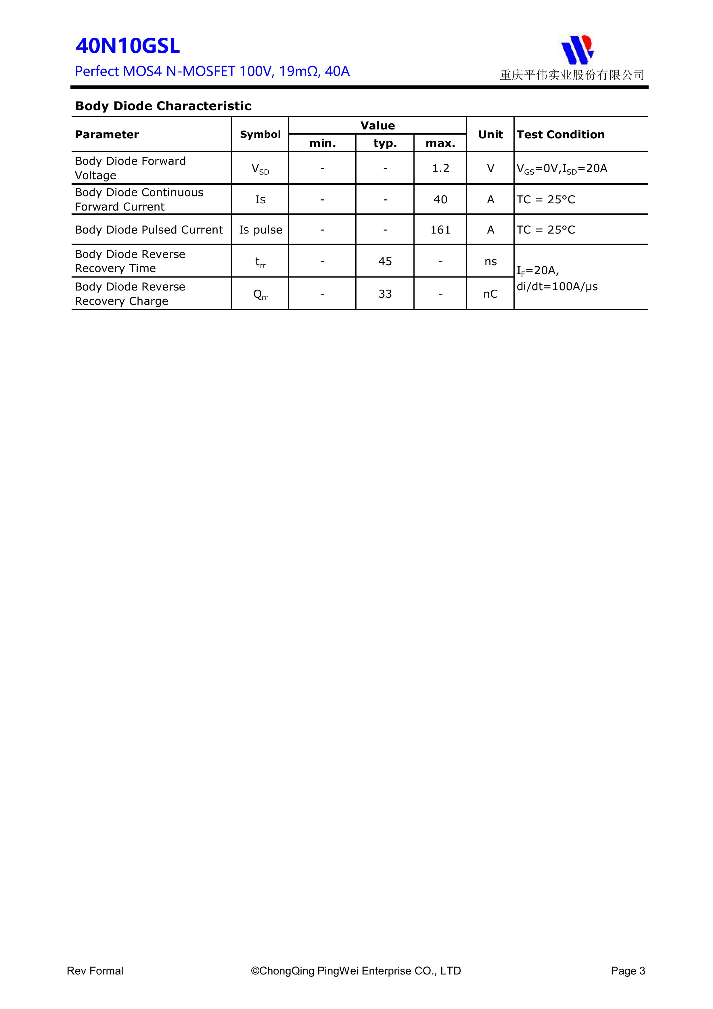 本品采用内置大尺寸芯片,贴片式封装,,具有适应中低电压低内阻损耗高频高效恢复等电气特性特点。通用于电源、小家电、锂电池、马达电机、电动工具、无人机、电器、适配器、充电器、逆变器、充电桩、特种电源、高频电源、风光储新能源、医疗设备、工业工控等产品电路作电子开关、控制、整流、放大、钳位、防反接、防逆回流等作用。PY平伟大芯片中低电压大电流低内阻低漏电的分立式功率整流晶体开关管40N10GSL。