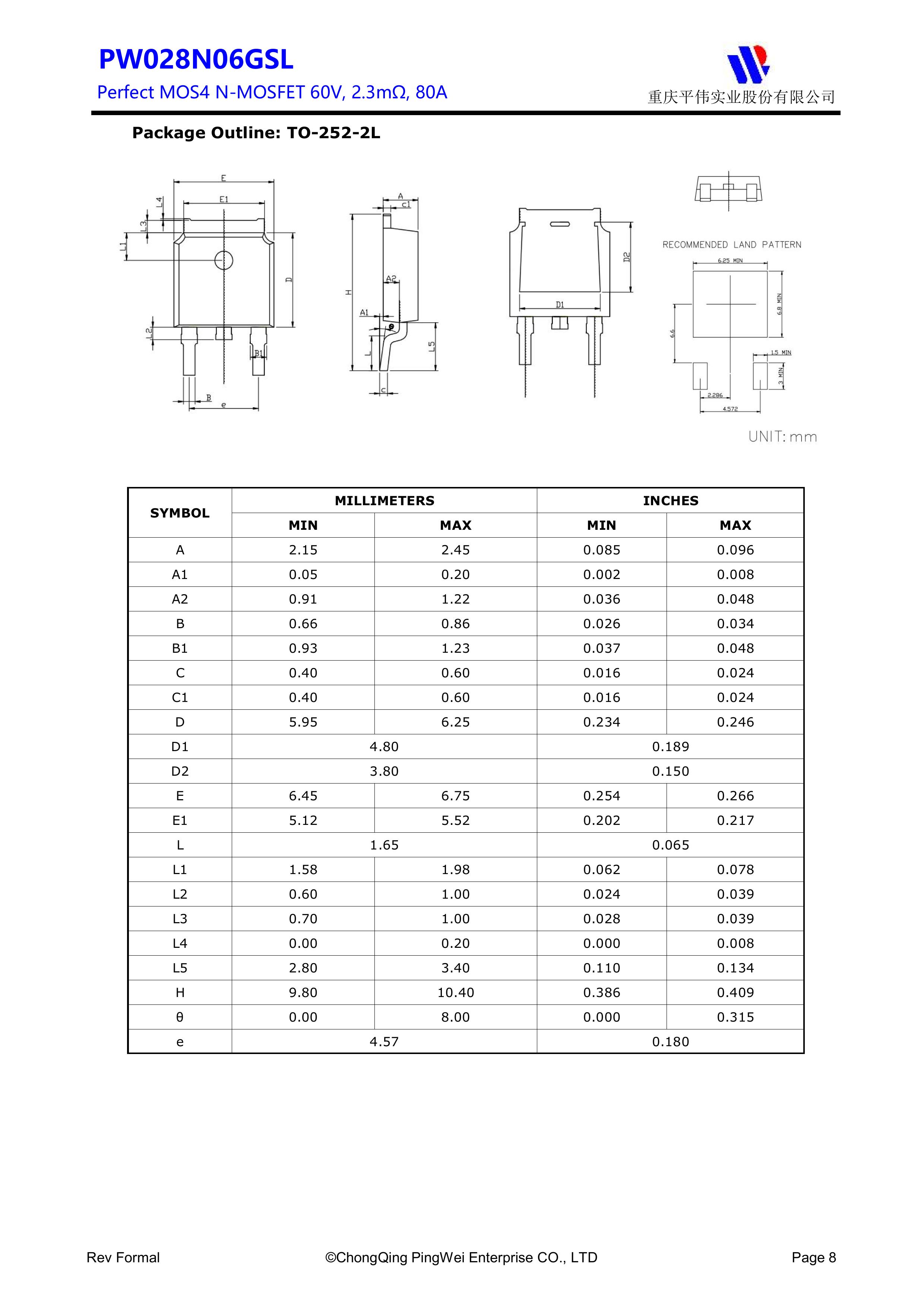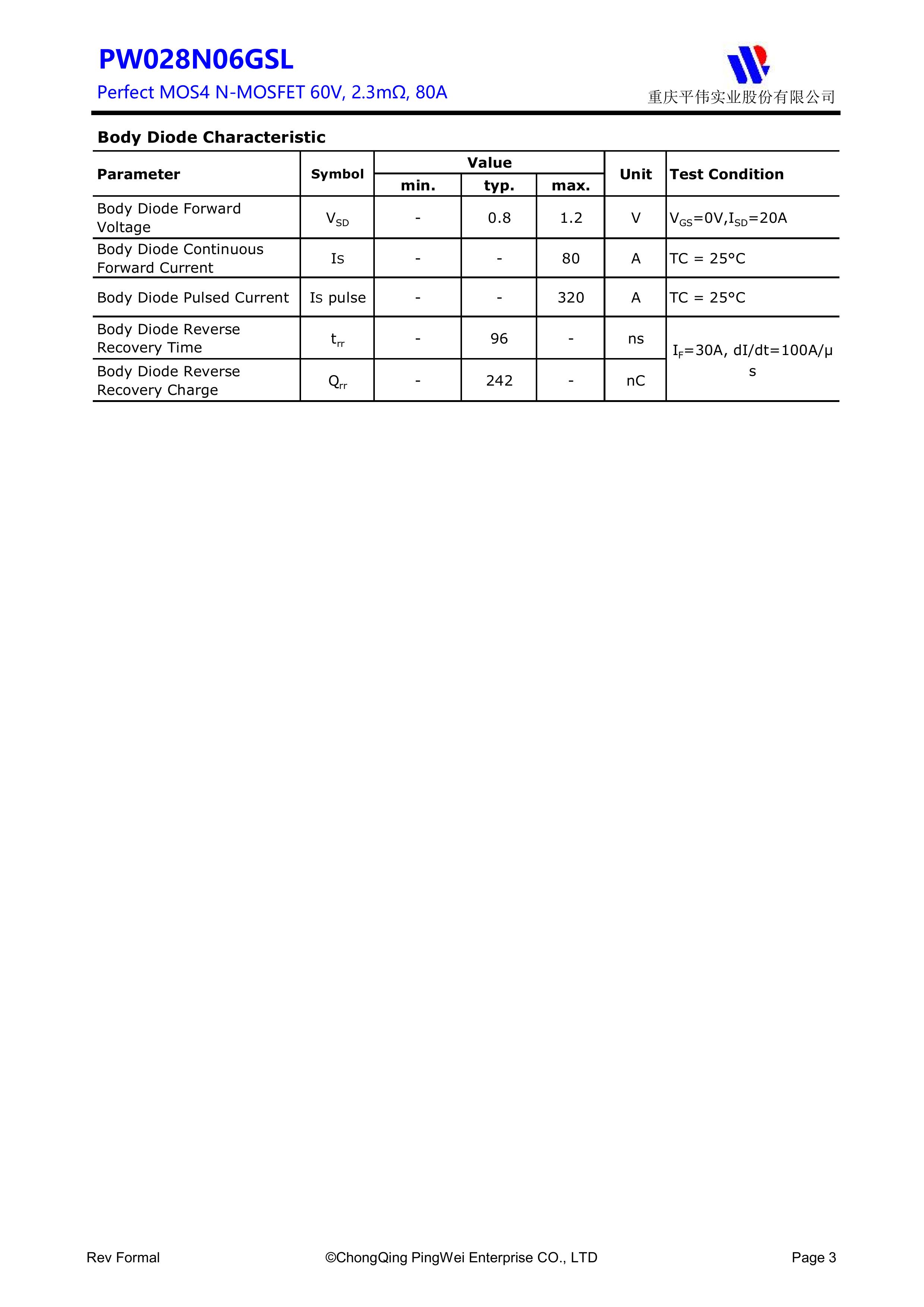 PY/重庆平伟实业 PW028N06GSL 全新原厂原装中低压高频功率控制电子开关管,N型沟道场效应管60V、80A、2.3mΩ、N-Channel、贴片式中低压MOSFET:PW028N06GSL。Vds电压:60V;Id电流:80A;Rds(on)内阻:2.3mΩ;封装方式:TO-252-2L;最小包装数量:2500pcs/盘-编带。