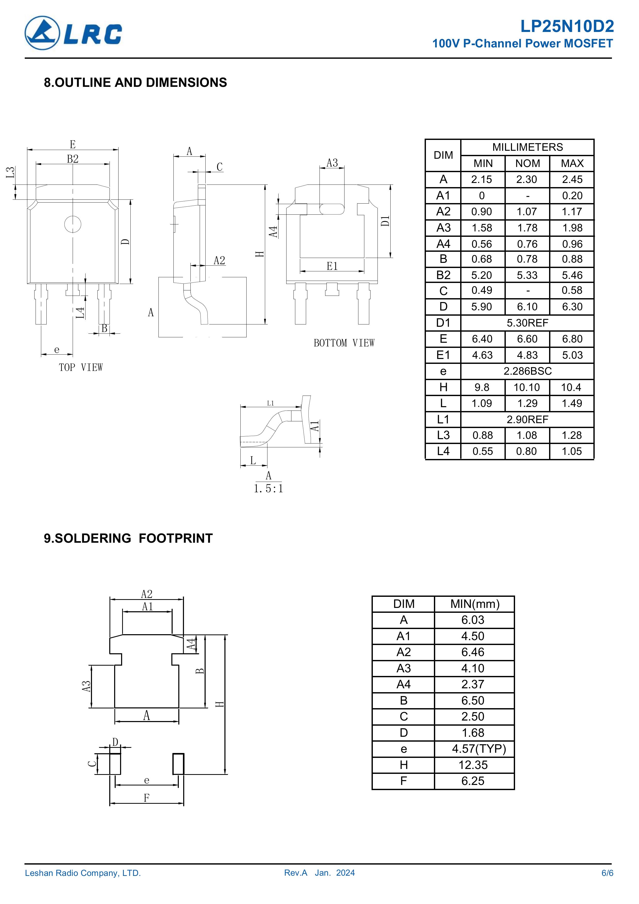LRC/乐山无线电 LP25N10D2 全新原厂原装中低压高频功率控制电子开关管,P型沟道场效应管-100V、-25A、45mΩ、P-Channel、贴片式中低压MOSFET:LP25N10D2/25N10。Vds电压:-100V;Id电流:-25A;Rds(on)内阻:45mΩ;封装方式:TO-252-2L;最小包装数量:2500pcs/盘-编带。