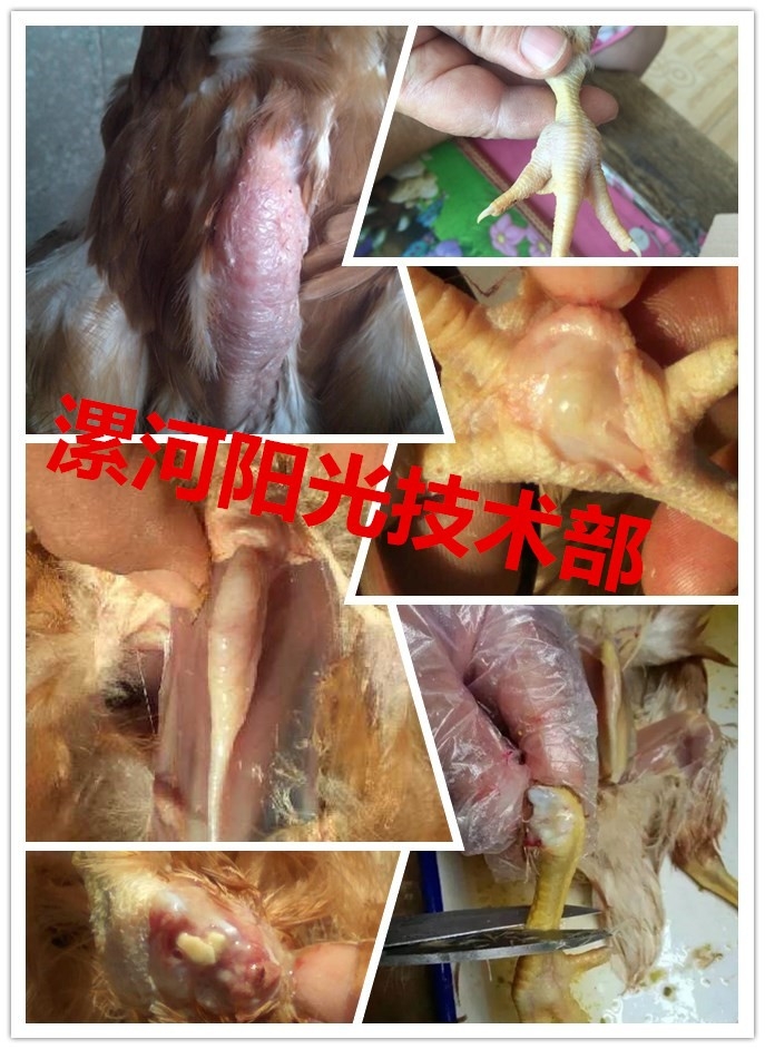 病例:河南安阳滑县苏老板,2400羽海兰褐蛋鸡群,于32日龄发现鸡群中有站立不起的消瘦鸡只,经当地兽医前后诊断为病毒性关节炎,投用大量的抗生素后无效,挑出来站立不起的鸡只有160多只,后给我技术部打电话咨询时鸡群已经50多日龄。经过诊断确诊为滑液囊支原体,治疗方案:支囊净连用三个疗程,百热定和解除免疫抑制的料中宝用前十天,在用药第5天回访鸡群情况好转,站立不起的鸡只已经不再发展,鸡群采食量明显增加,感染严重的鸡只使用拜有利注射液注射三天后配合用药也已全部治愈。