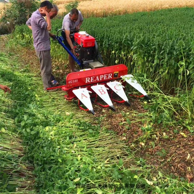 该机以收割水稻和小麦为主,也可以收割大豆、牧草. 芦苇及单支株较细的作物。广泛适用于平原、丘陵、坡地、窄小地块、田间套作等地块。由于该机体积小、重量轻,机动性能灵活、作简单方便省力、割茬低、不压撮、且不受作物行距和垄距的等优点,广泛适用于大、中、小地块作物的收割,所以也非常适宜交通不便的地区使用。4G系列稻麦割晒机,是一种手扶自走式收割机械。在改进外观造型、增强适应性、提高作业质量、强化系统的可靠性、优化细部技术结构等方面,均实现了创新升级,是一款具有国内领鲜水平的新产品,该机以收割水稻和小麦为主,也可以收割大豆、牧草. 芦苇及单支株较细的作物。广泛适用于平原、丘陵、坡地、窄小地块、田间套作等地块。由于该机体积小、重量轻,机动性能灵活、作简单方便省力、割茬低、不压撮、且不受作物行距和垄距的等优点,广泛适用于大、中、小地块作物的收割,所以也非常适宜交通不便的地区使用。机器作业时配套轮胎为直径加宽轮胎,防滑不卡料、留茬高低可调
